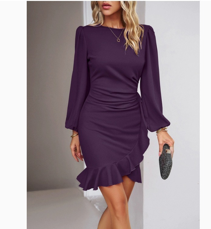Women’s Puff Long Sleeve Dresses Fashion Graceful Solid Color Slim Hip-covering Short Dress Womens Clothing
